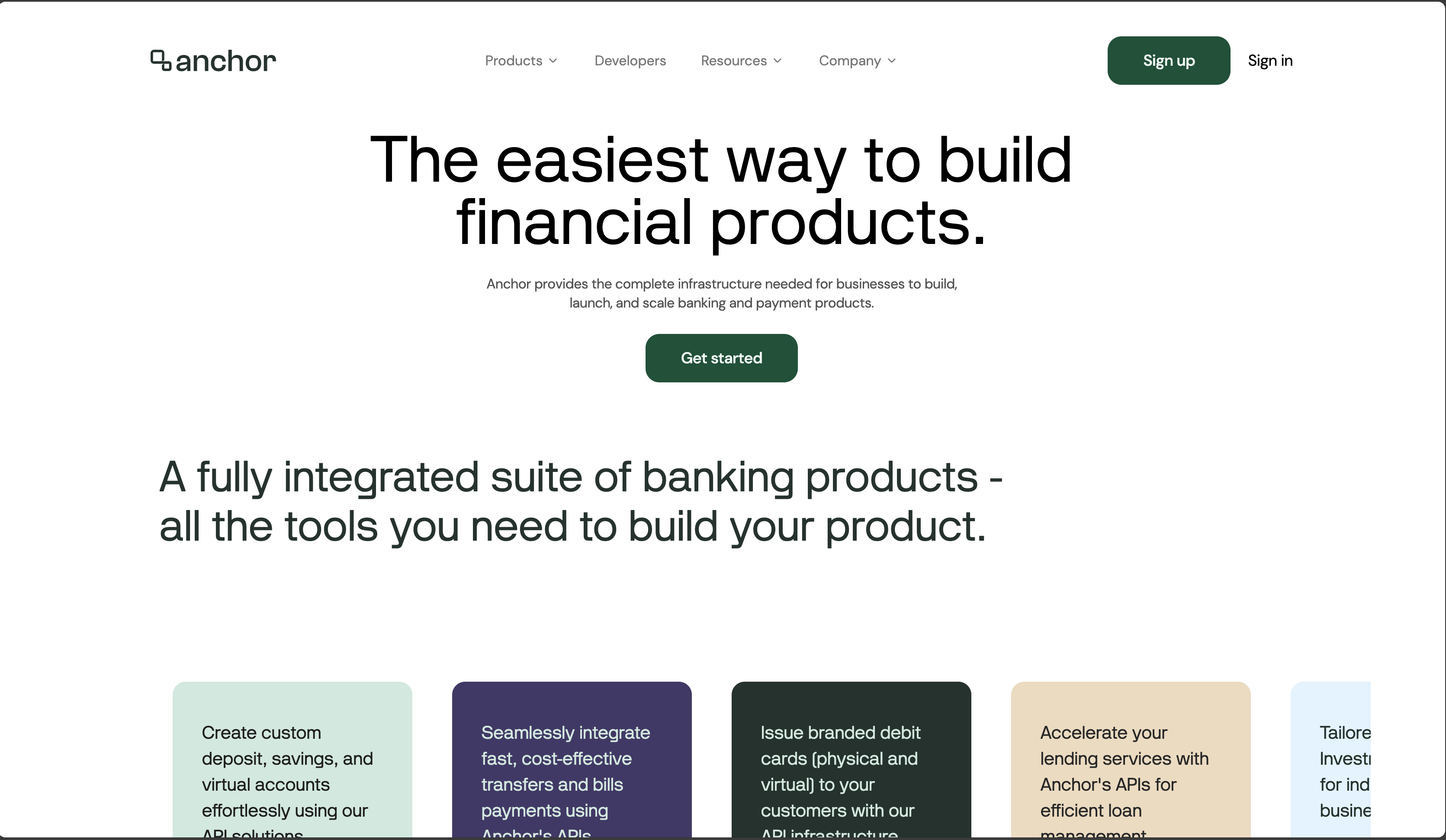 Anchor provides the complete infrastructure needed for businesses to build, launch, and scale banking and payment products.