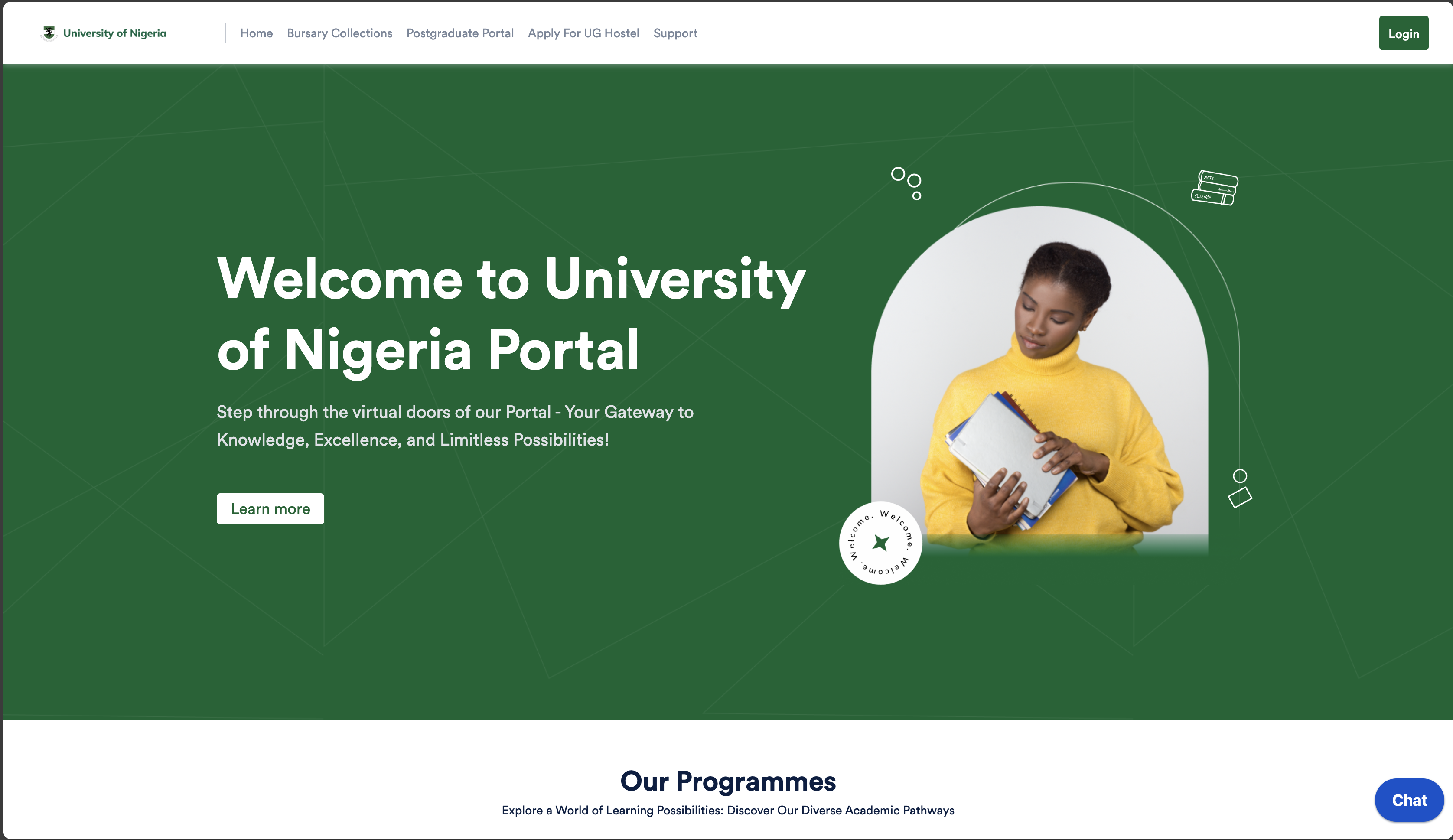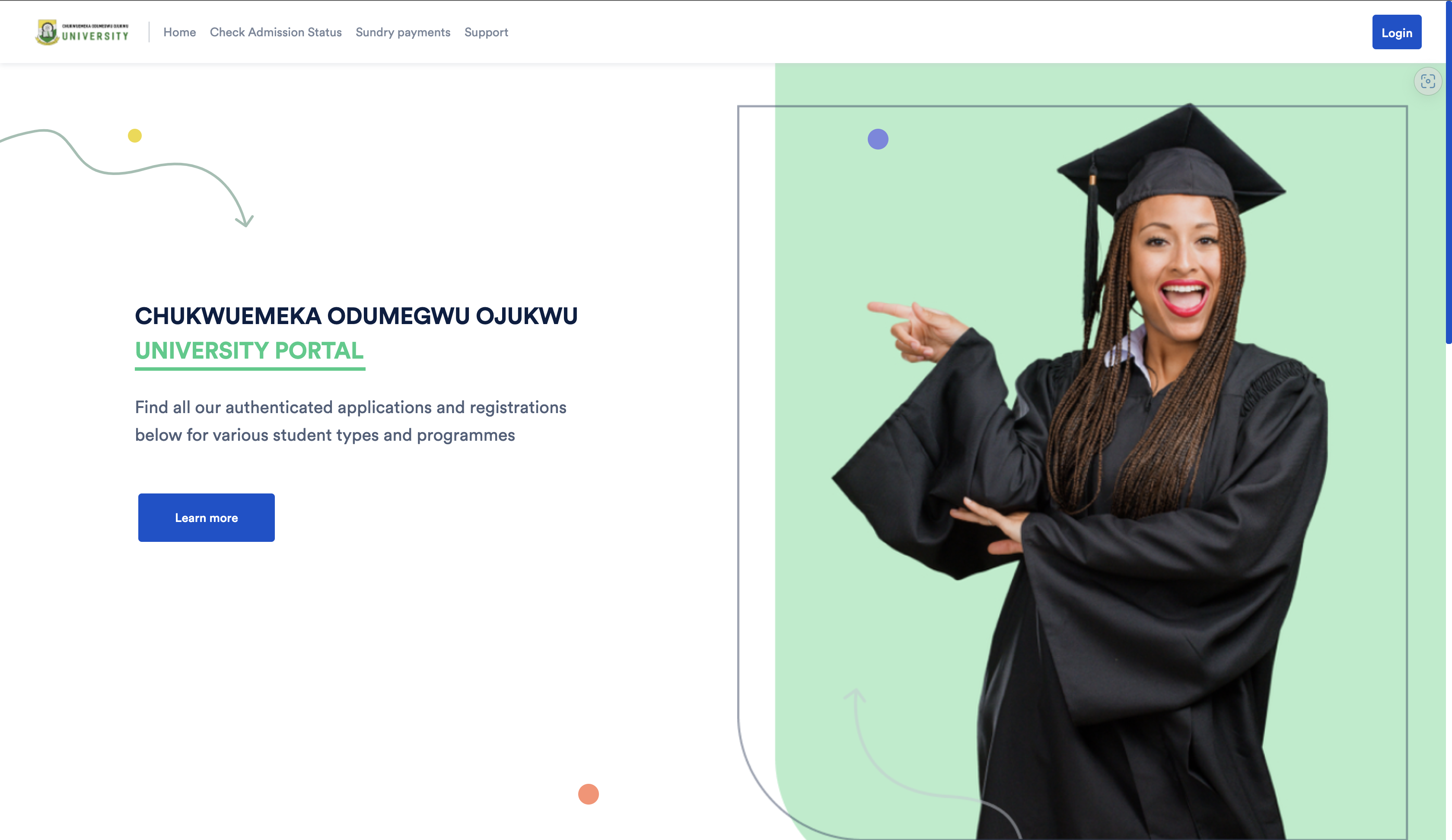 University of Nigeria Nsukka, is a leading technological university in Nigeria. Engineered a new school portal, through cutting edge design implementation, and meticulously crafted, performant code.