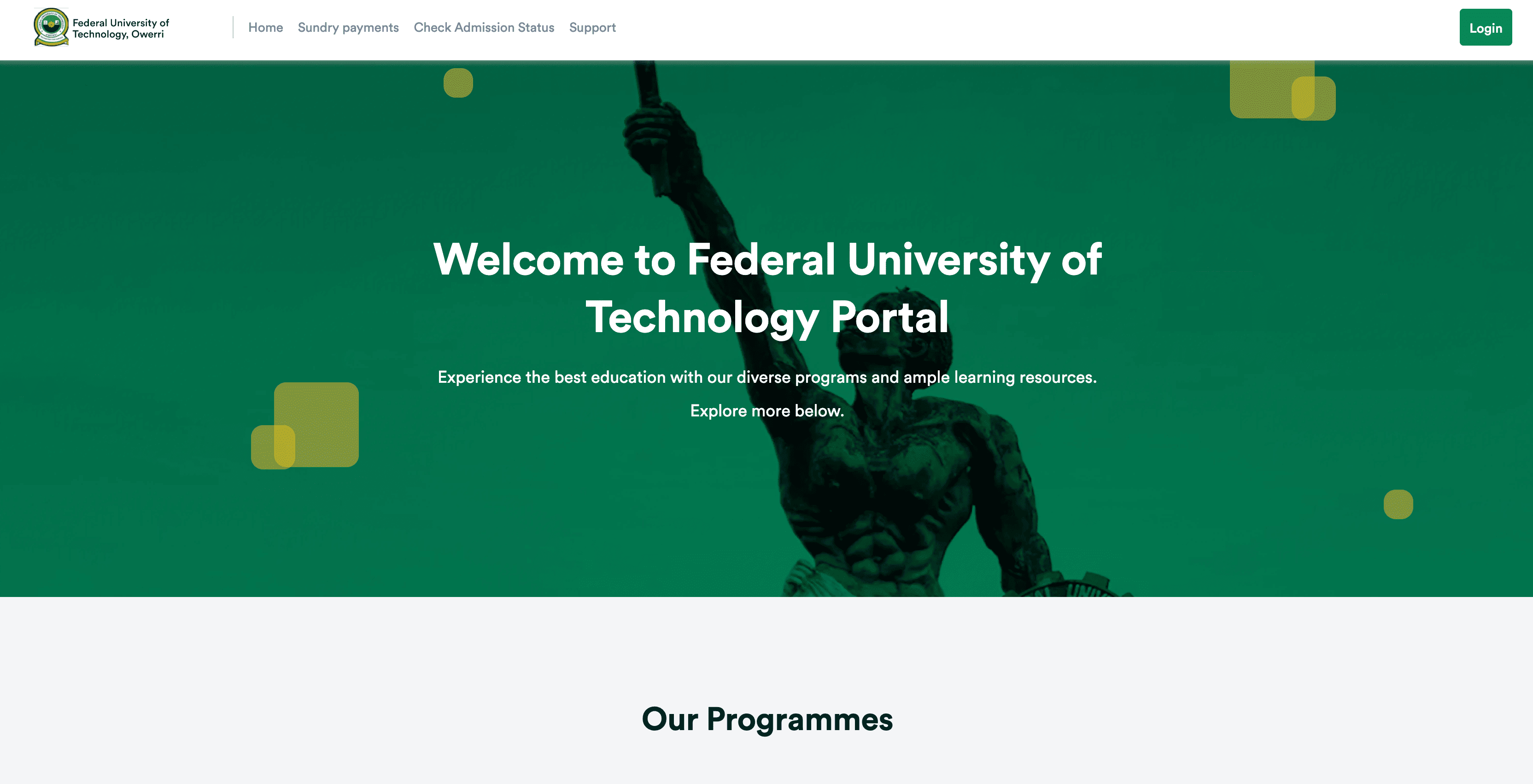 Federal Univeristy of Technology Owerri, is a leading technological university in Nigeria. Engineered a new school portal, through cutting edge design implementation, and meticulously crafted, performant code.
